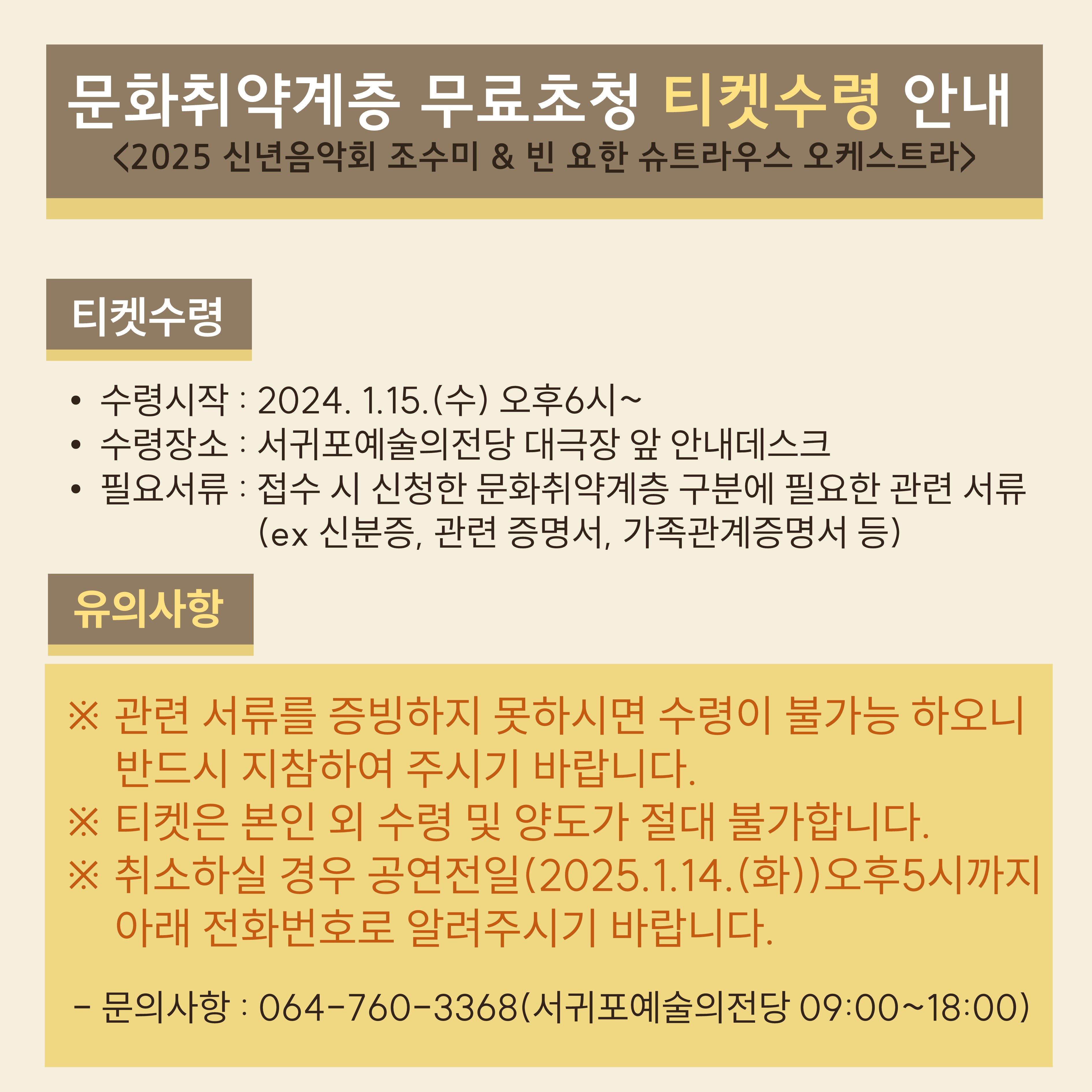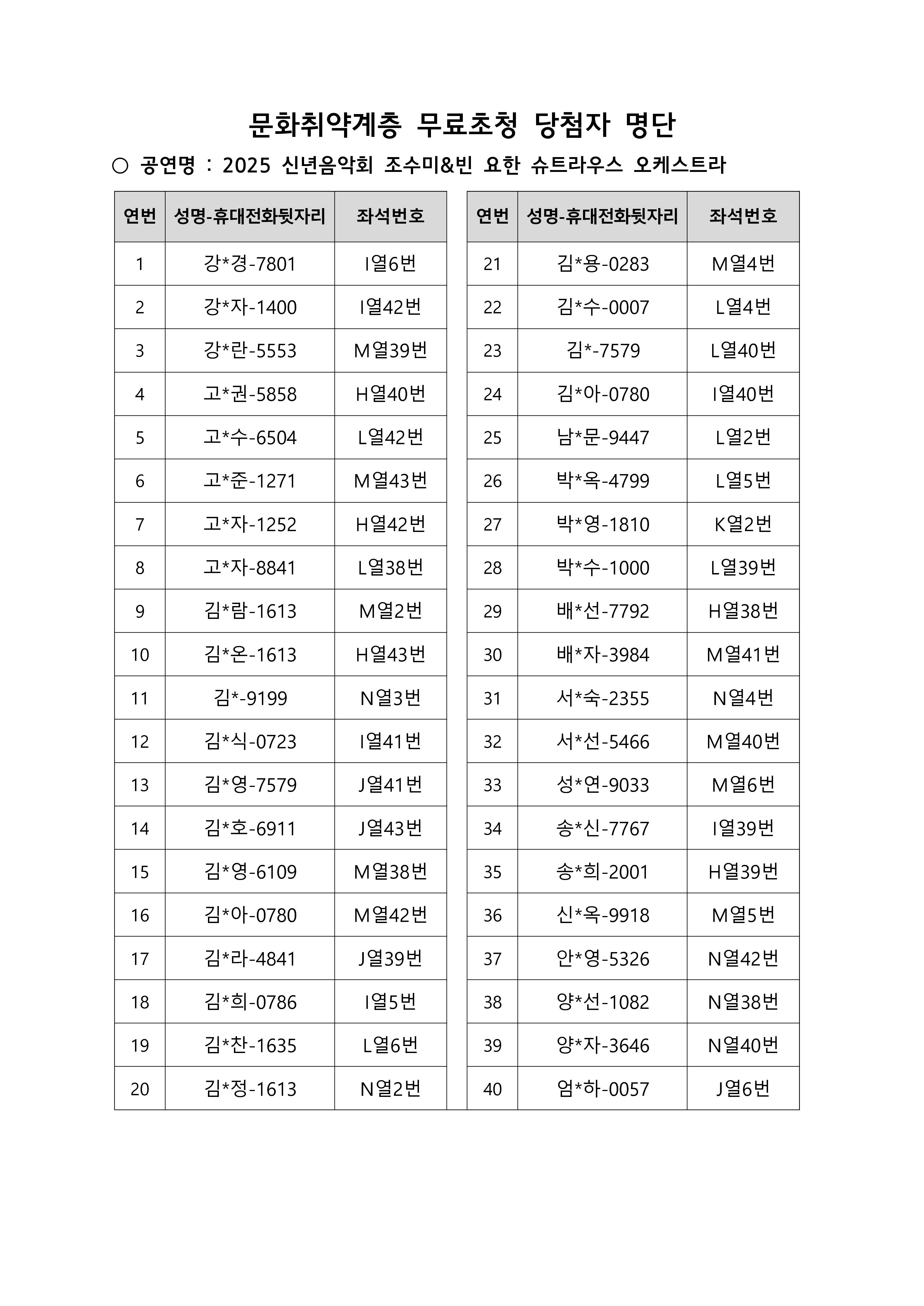 문화취약계층 무료초청 공개추첨 당첨자 명단<2025신년음악회 조수미&빈 요한 슈트라우스 오케스트라>