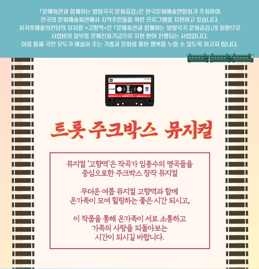 트로트 주크박스 창작뮤지컬 '고향역'은 서귀포예술의전당, 함안문화예술회관, 제주도문예회관, 익산예술의전당, 뉴스테이지가 공동 제작한다.