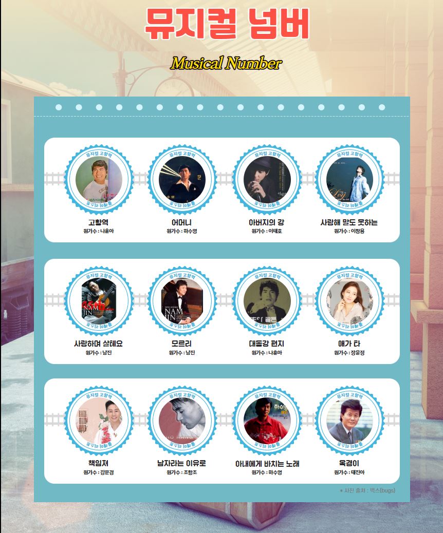창작뮤지컬'고향역'은 작곡가 임종수의 유명 대중음악 명곡을 재해석한 뮤지컬이다.