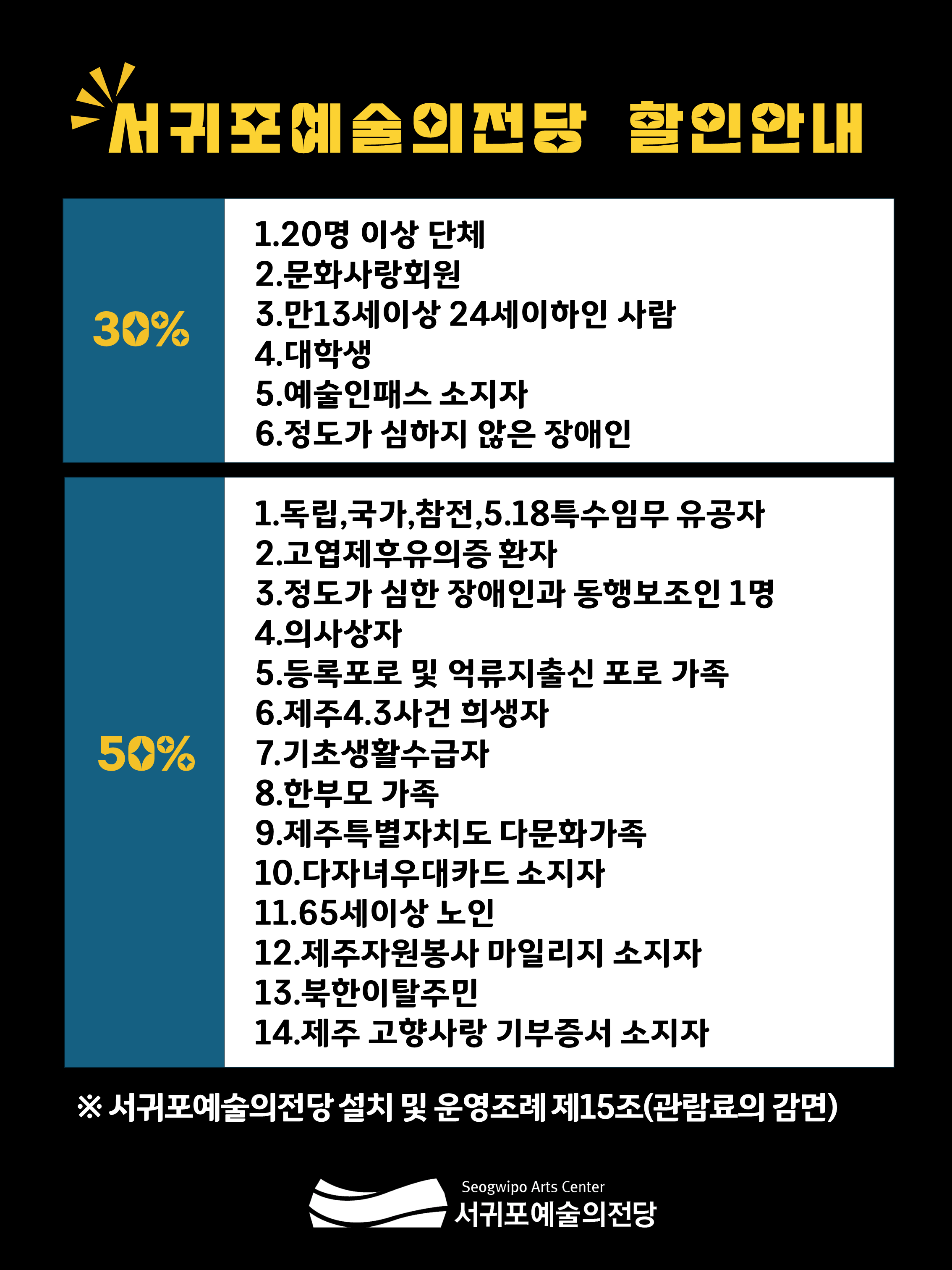 ※ 서귀포예술의전당 설치 및 운영조례 제15조(관람료의 감면)