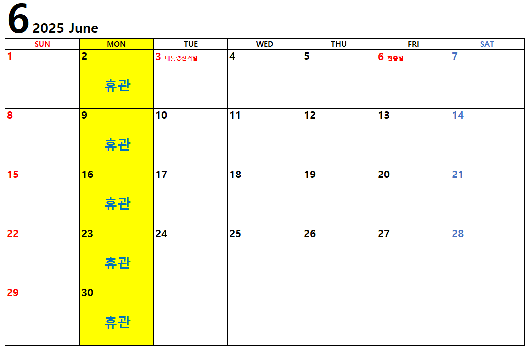 | 2025년 6월 휴관일 안내 | 천문과학문화관 | 2025-05-24 | 3662 | ||