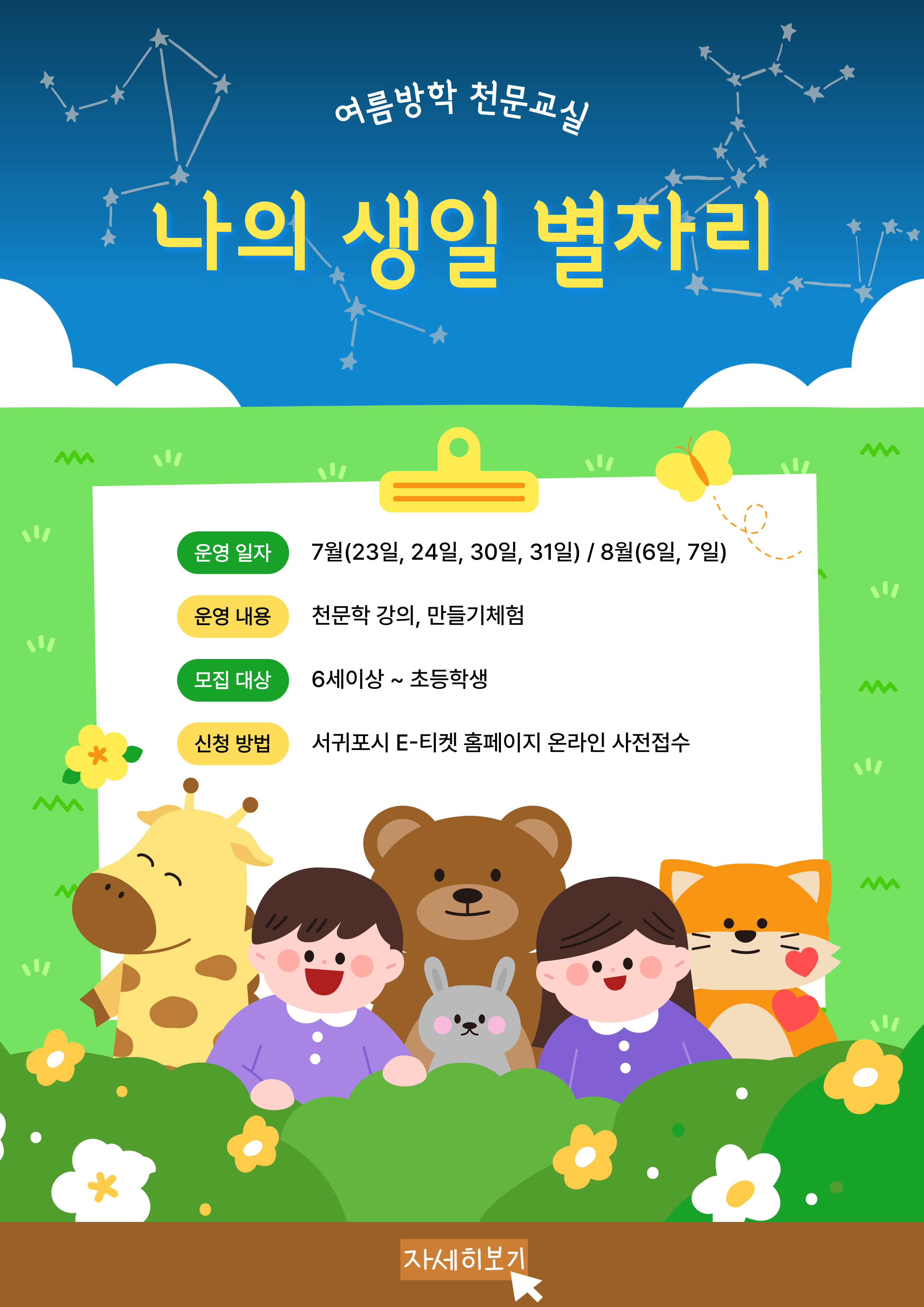 ○ 신청방법: 서귀포시 E-티켓 홈페이지(링크) ► "방학천문교실" 프로그램 ► 날짜, 시간 선택