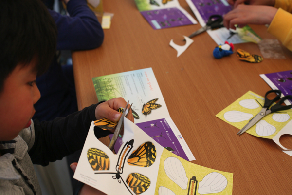 조심스럽게 가위로 나비 모양을 오리고 있는 체험자의 모습이 아주 진지합니다.