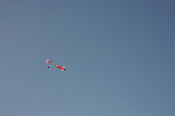 모형로켓이 발사되고 하늘에서 낙하산이 펴진 모습이네요~