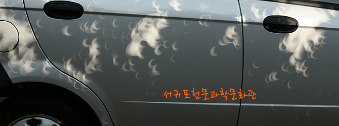 이 나무의 그림자를 비추는 곳에 차 한대가 있었는데요, 왠지 이런 그림자는 처음 본 듯한 느낌이라, 일식 때문인가 싶어 얼른 사진을 찍어두었지요.