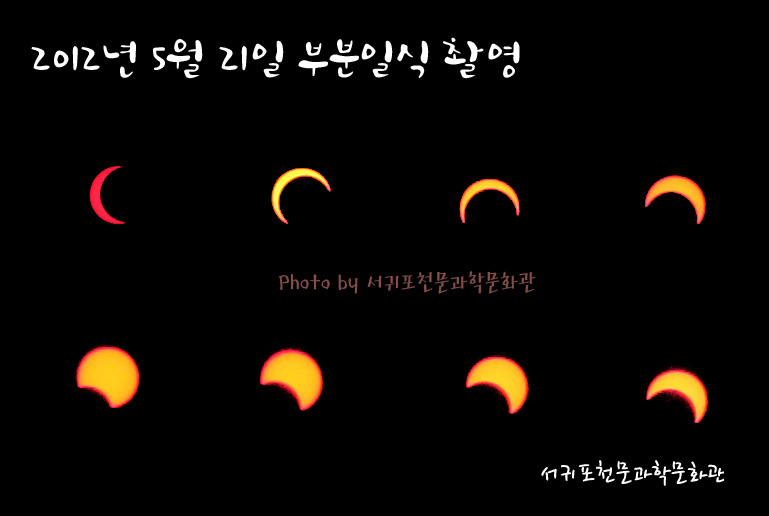 2012년 5월 21일 오전 6시 23분부터 8시 48분까지 약 2시간 25분 동안 달이 해를 가려 해의 일부분만 볼 수 있는 부분일식 현상이 일어났습니다.