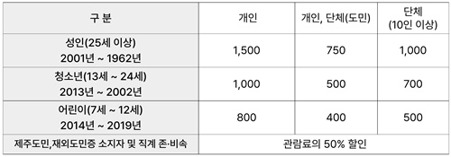 2. 6세 이하의 사람(단체인 경우에는 인솔교사를 포함한다)