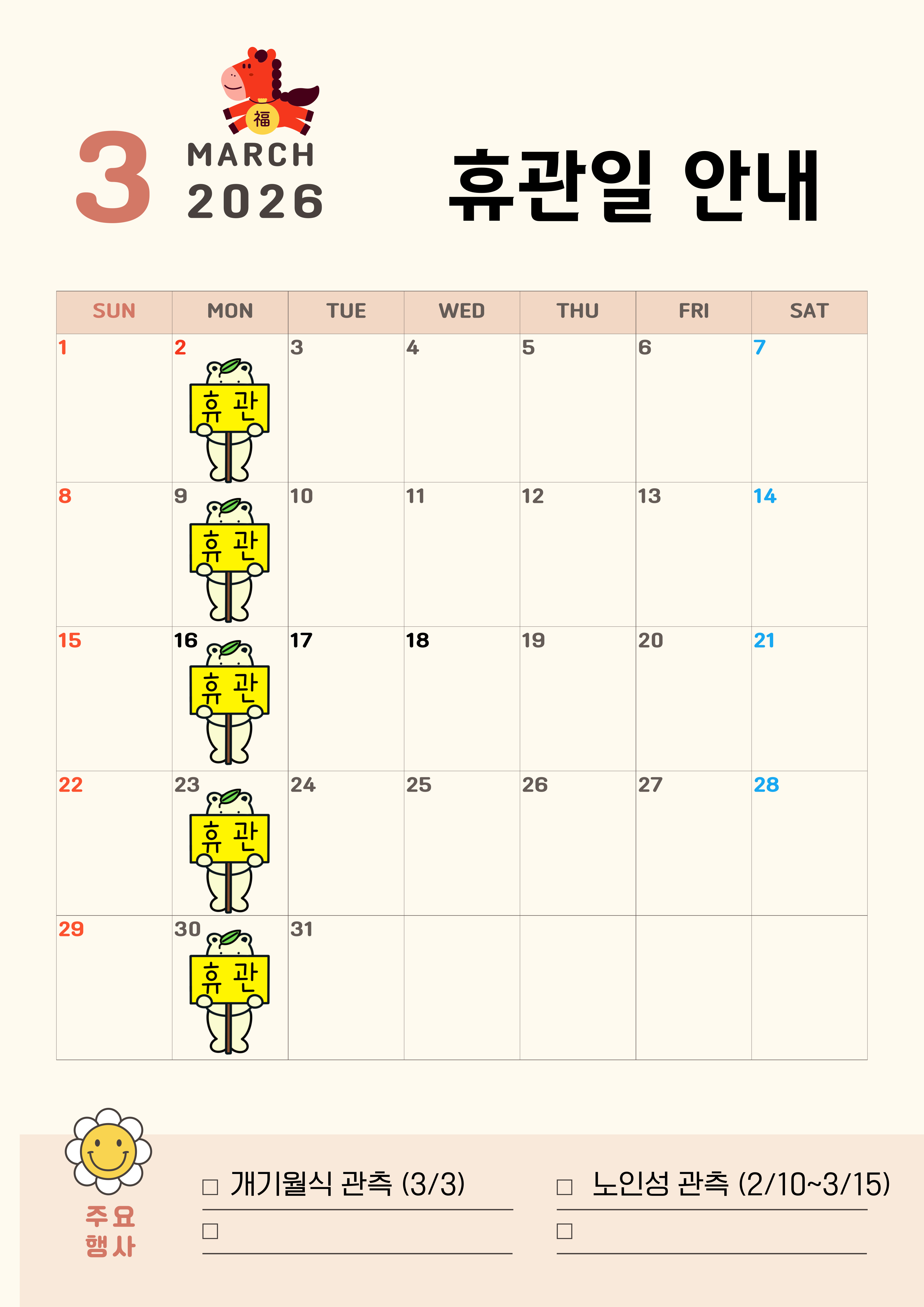 2026년 3월 휴관일 안내