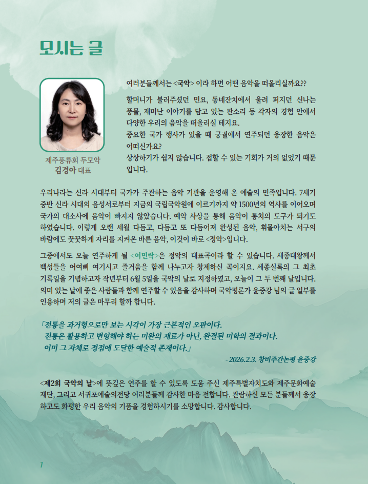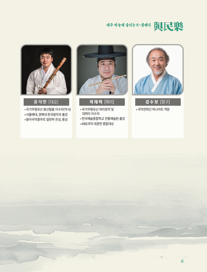 서귀포예술의전당 기획공연 <전통예술 여민락: 제주풍류회 두모악>