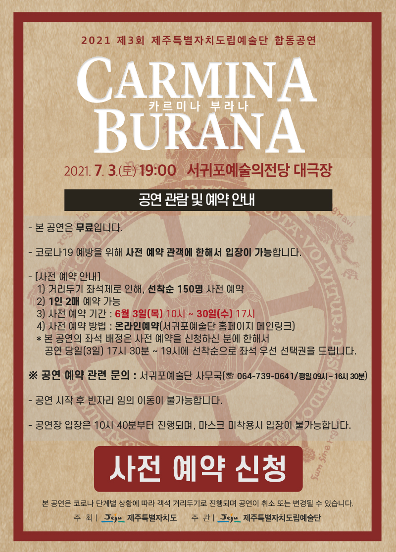 [공지] 제주특별자치도립예술단 합동공연 <카르미나부.. | 서귀포예술단 | 2021-05-31 | 8602 | ||