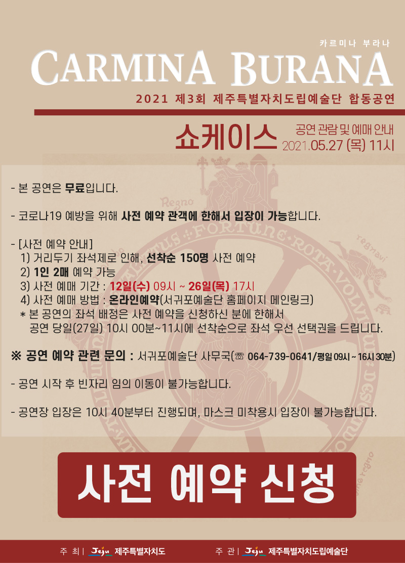 [공지] 제주특별자치도립예술단 합동공연 <카르미나부.. | 서귀포예술단 | 2021-05-11 | 8448 | ||