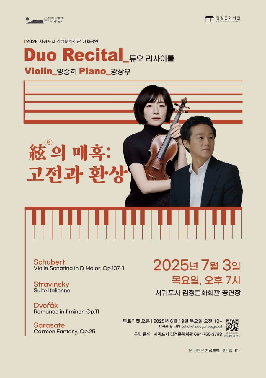바이올리니스트 양승희와 피아니스트 강상우의 한 여.. | 김정문화회관 | 2025-06-17 | 1978 | ||