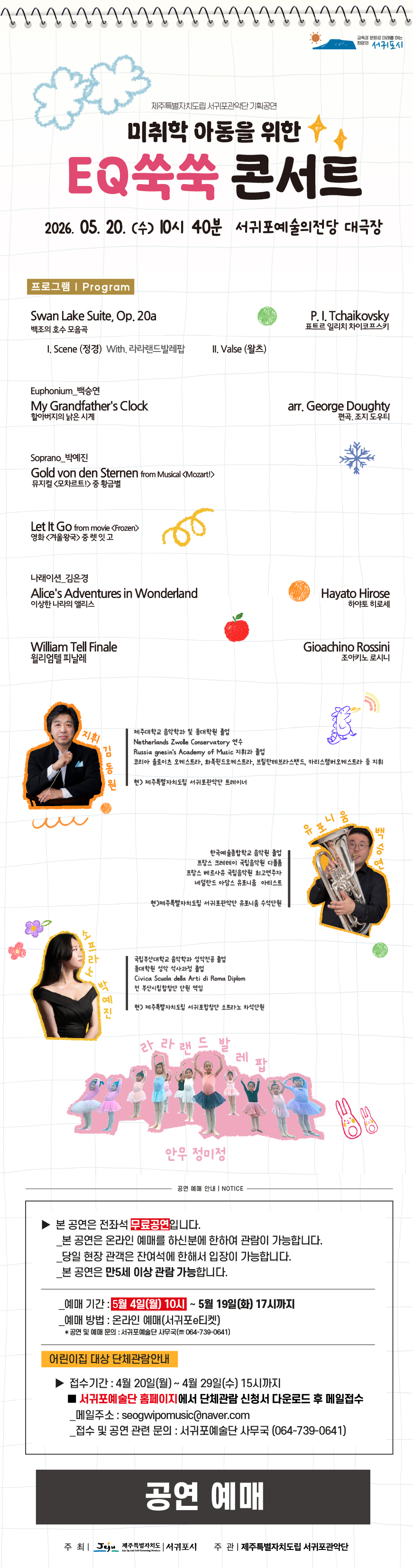 [공연] 도립서귀포관악단 기획공연 미취학 아동을 위한 EQ쑥쑥 콘서트 공연 정보 및 단체관람 신청 안내