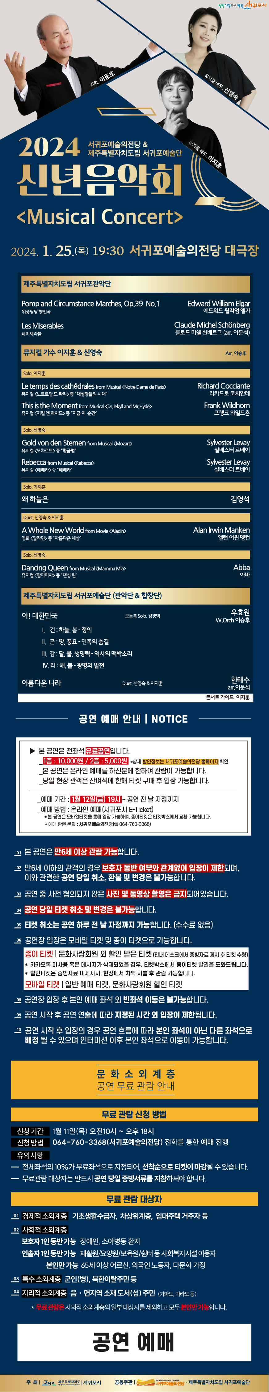 [공연] 도립서귀포예술단&서귀포예술의전당 공동기획 <2024 신년음악회:Musical Concert> 공연정보 및 예매안내