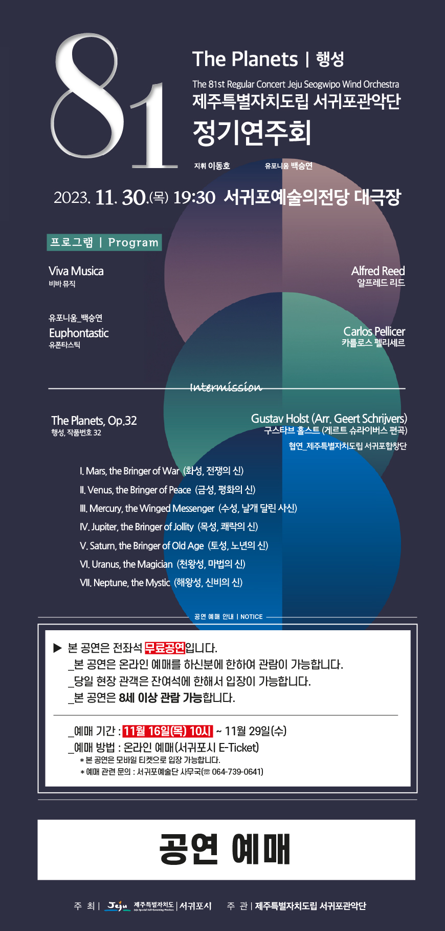 [공연] 도립서귀포관악단 제81회 정기연주회 공연 정.. | 서귀포예술단 | 2023-11-13 | 8478 | ||