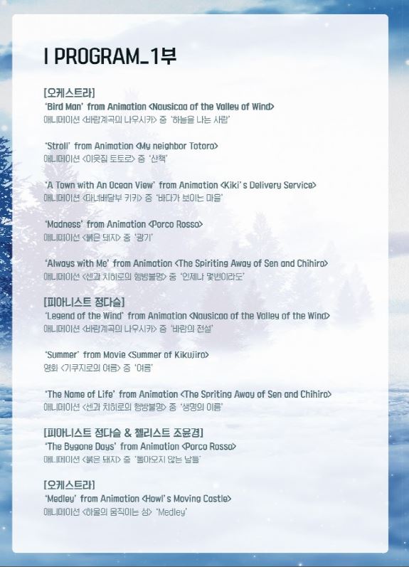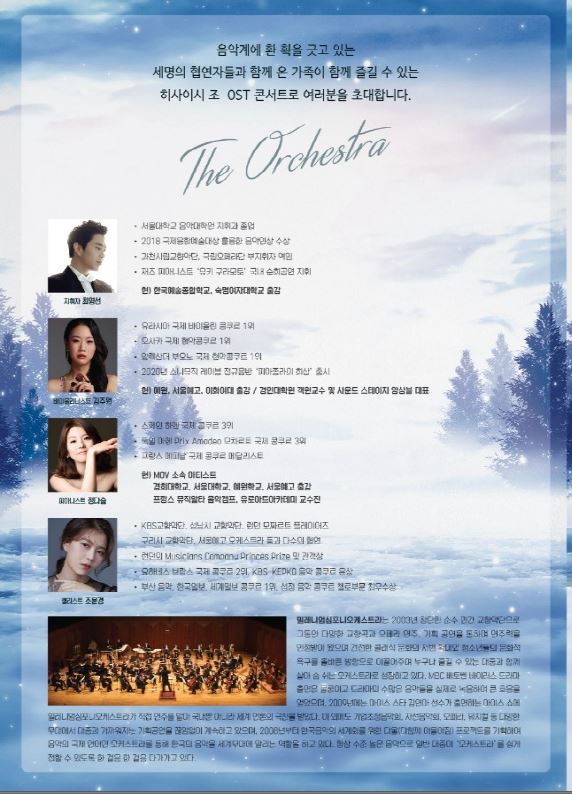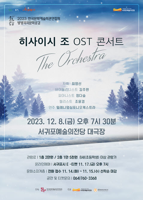 히사이시 조 OST 콘서트 : The Orchestra | 서귀포시 | 2023-10-26 | 10229 | ||