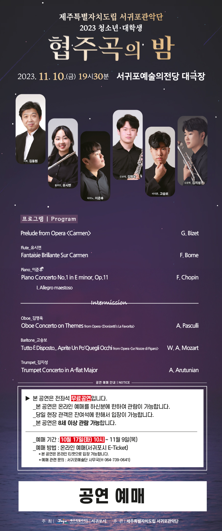 [공연] 제주도립서귀포관악단 2023 청소년 대학생 협주곡의 밤 공연정보 및 예매안내
