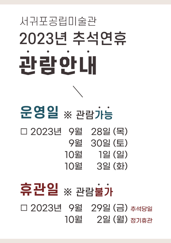 이중섭미술관 추석연휴 운영안내 (휴관일 9/29, 10/2)