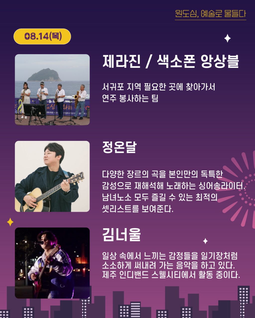 2286 | 2025 서귀포 원도심 문화 페스티벌 (5주차).. | 김정문화회관 | 2025-08-20 | 799 | |