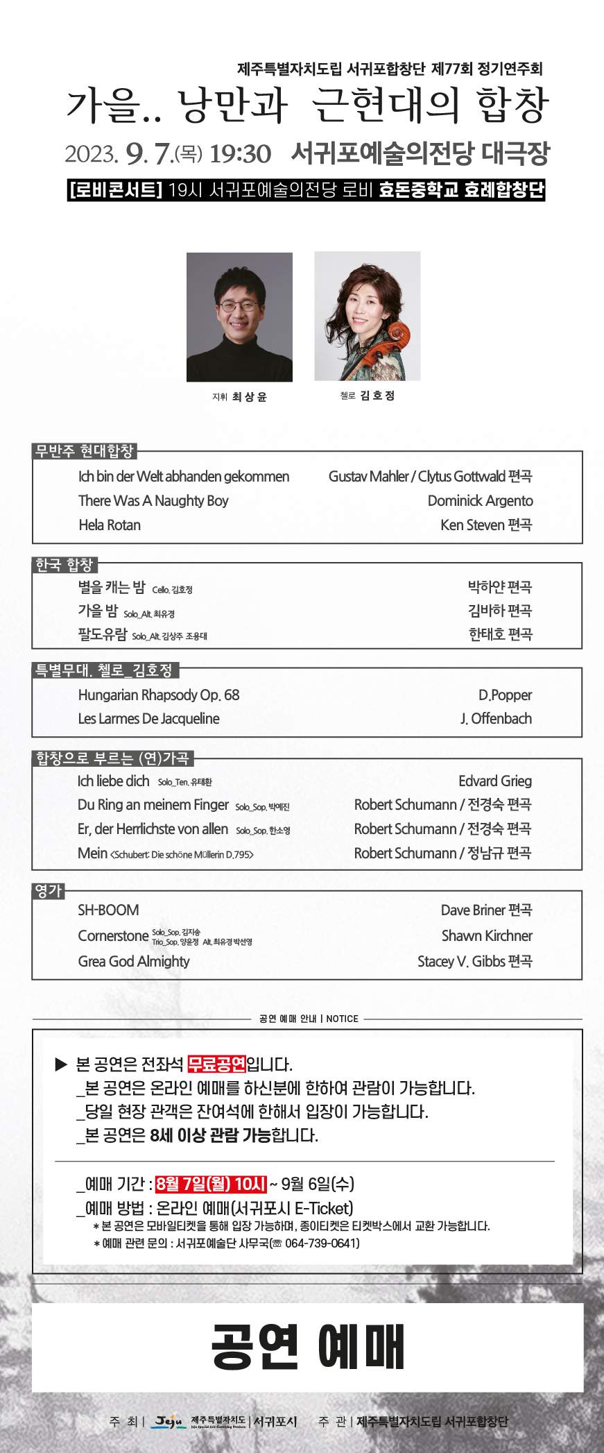 1746 | 음악콘서트 클래식하다 _문예회관 문화예술교육프로그.. | 서귀포시 | 2023-08-09 | 10533 | |