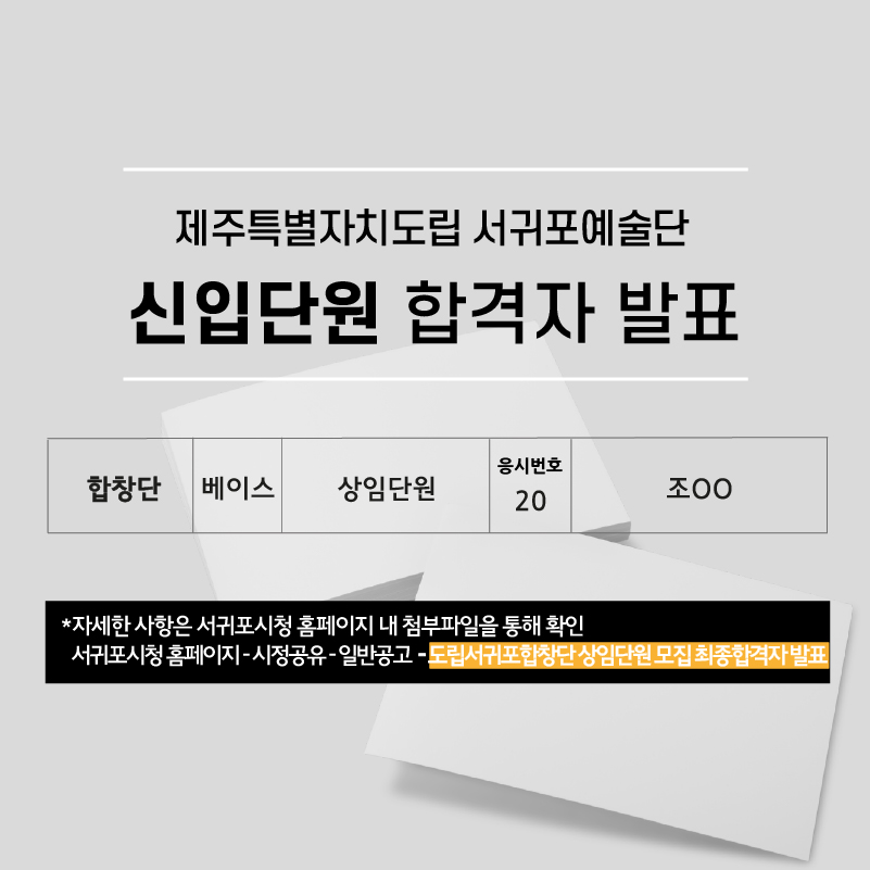 [채용] 2023 도립서귀포합창단 상임단원 공개모집 최종합격자 발표 및 채용후보자 등록 공고