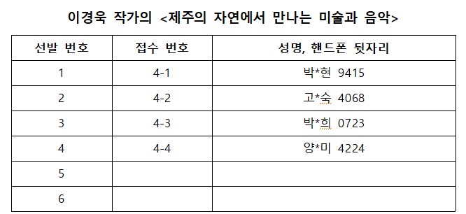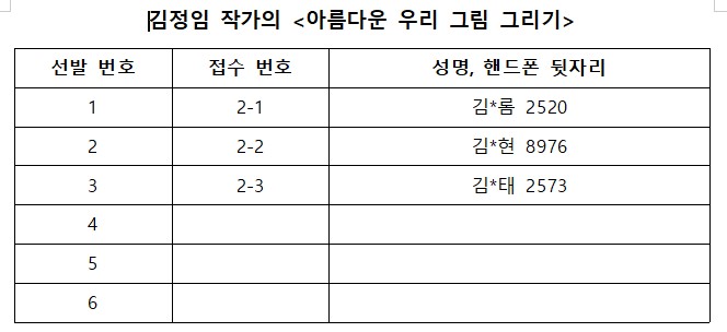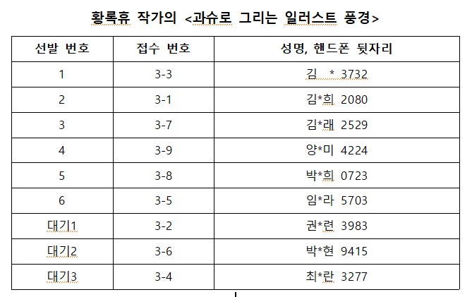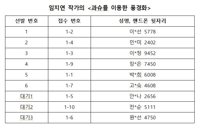 입주작가와 함께하는 미술체험교육 수강생 선발 결과