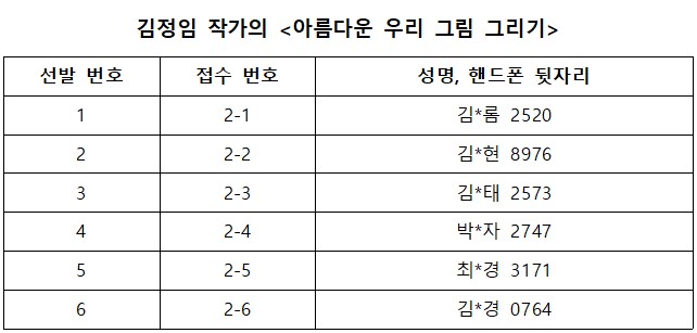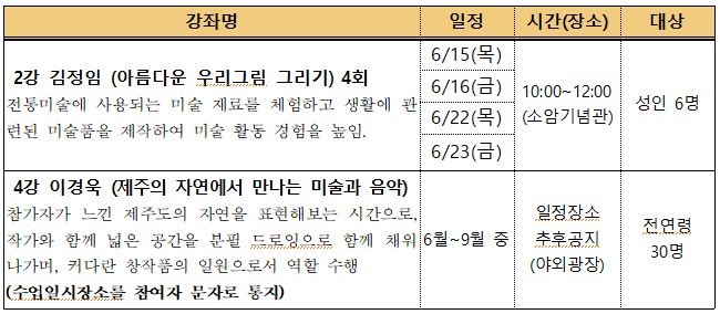 ․ 대상인원 : 2강(김정임작가) 성인 3명, 4강(이경욱작가) 전연령 26명