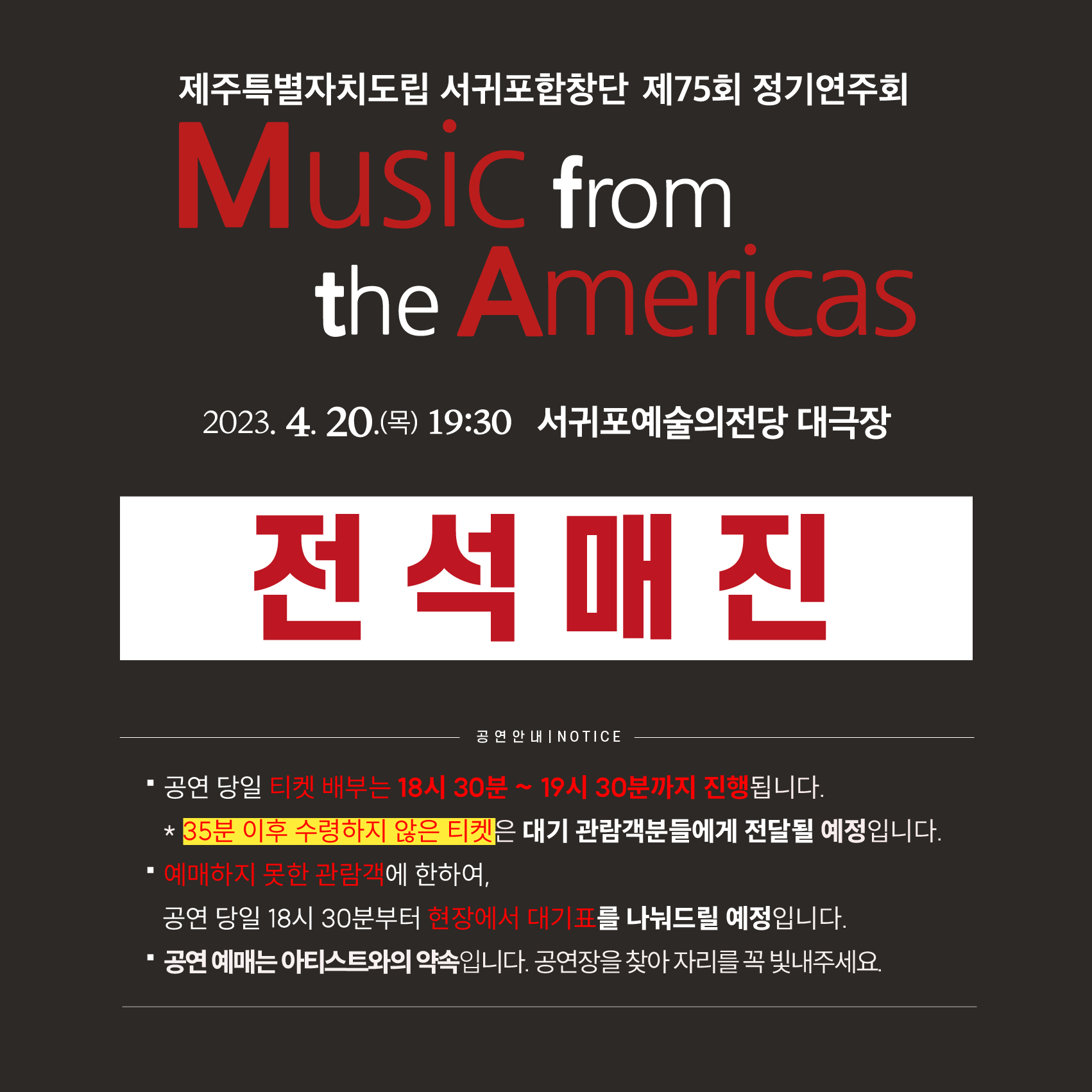 [공연] 도립서귀포합창단 제75회 정기연주회 공연 전석 매진 안내