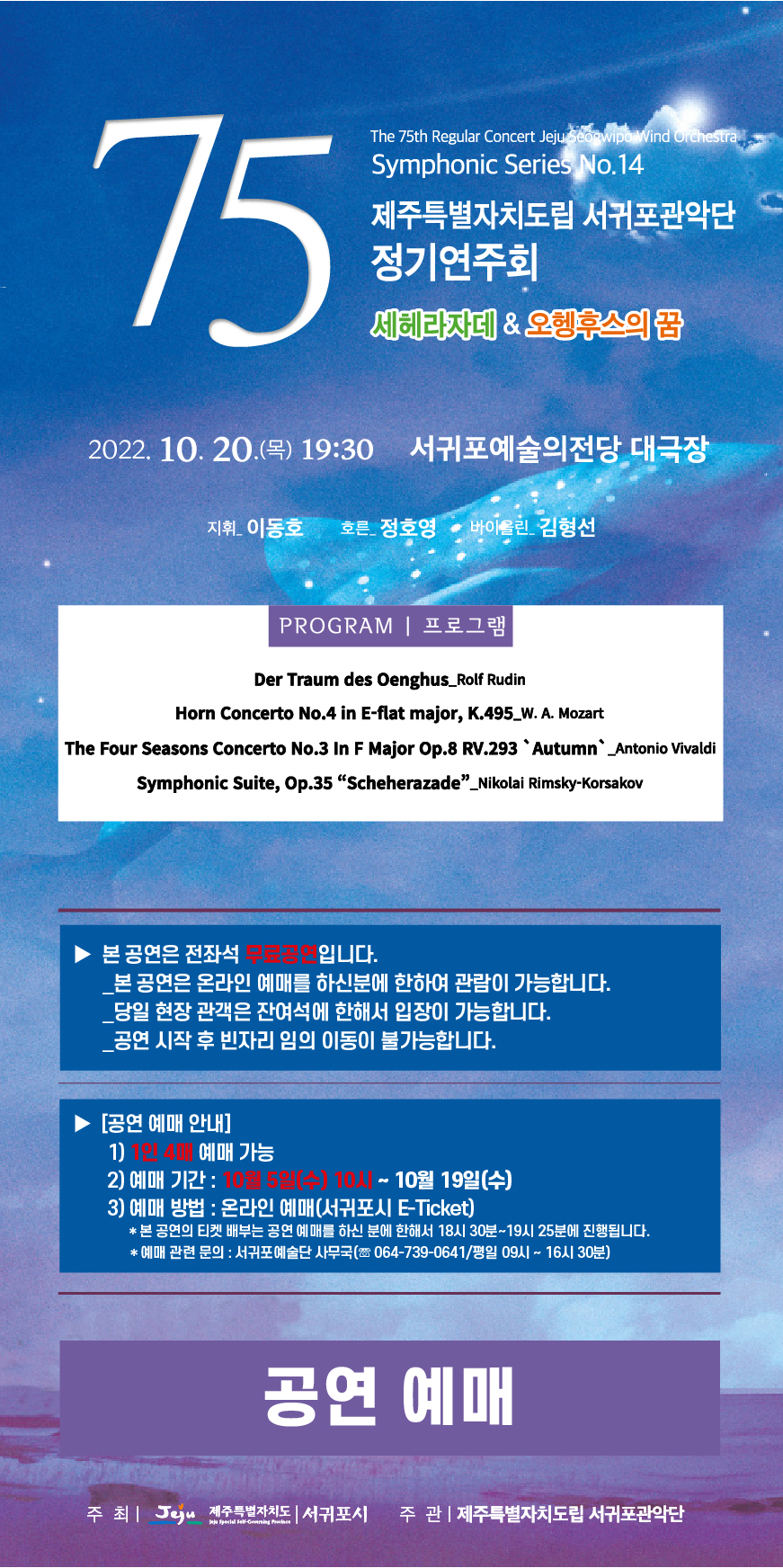 [공연] 도립서귀포관악단 제75회 정기연주회 공연 정.. | 서귀포예술단 | 2022-09-30 | 6935 | ||