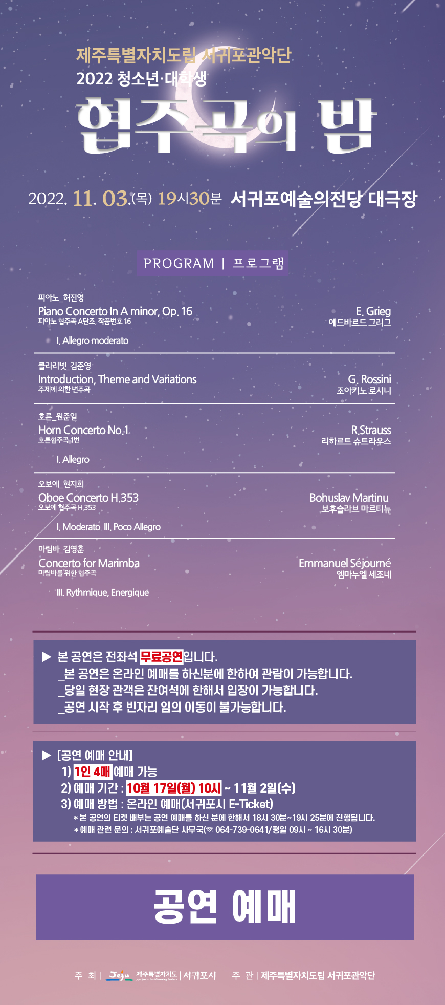 [공연] 도립서귀포관악단 2022 청소년·대학생 협주곡의 밤 공연 정보 및 예매 안내