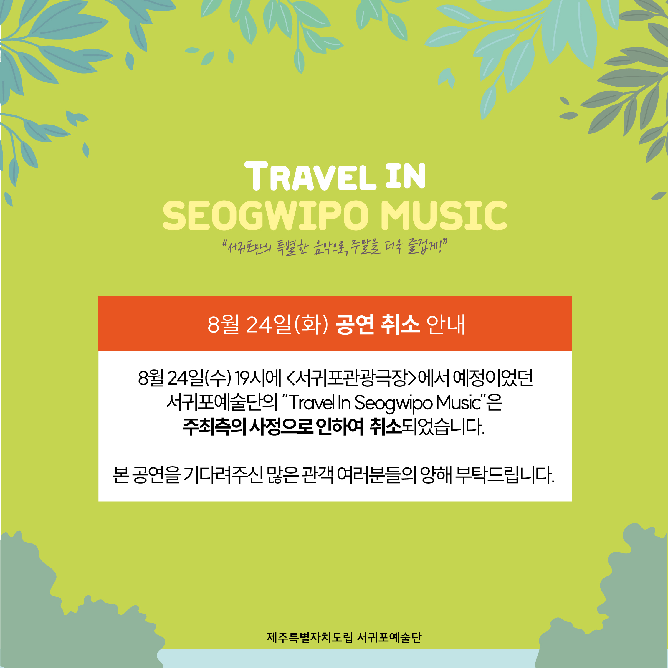 [공연] Travel in Seogwipo Music_관광극장 공연 취소 안내