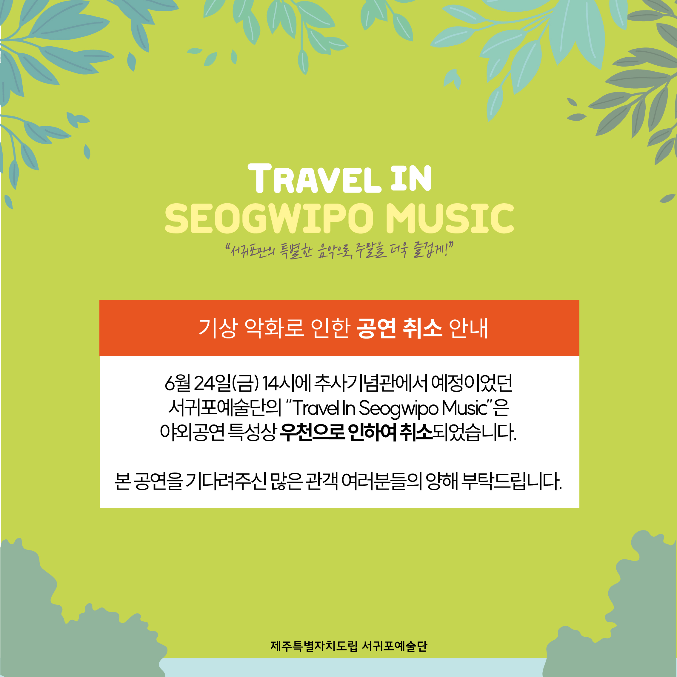 [공지] 2022 Travel in Seogwipo Music "제주 추사관" 공연 취소 안내