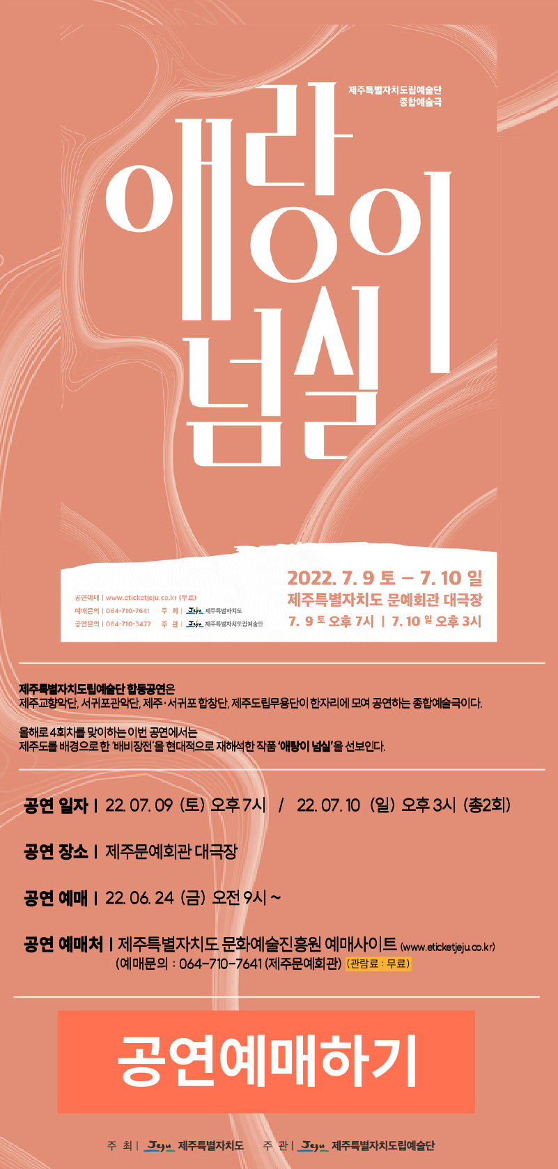 [공연] 제주특별자치도립예술단 제4회 합동공연 "애랑.. | 서귀포예술단 | 2022-06-24 | 8104 | ||