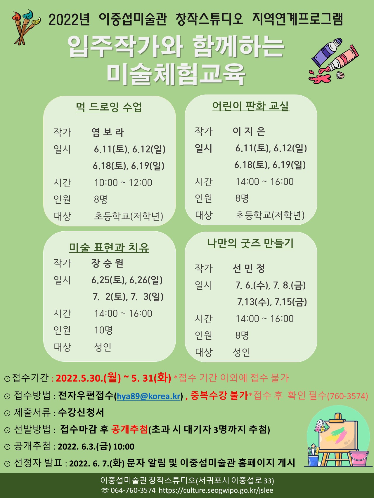 ★2022년 이중섭미술관 창작스튜디오 입주작가와 함께하는 미술체험교육 수강생 모집★
