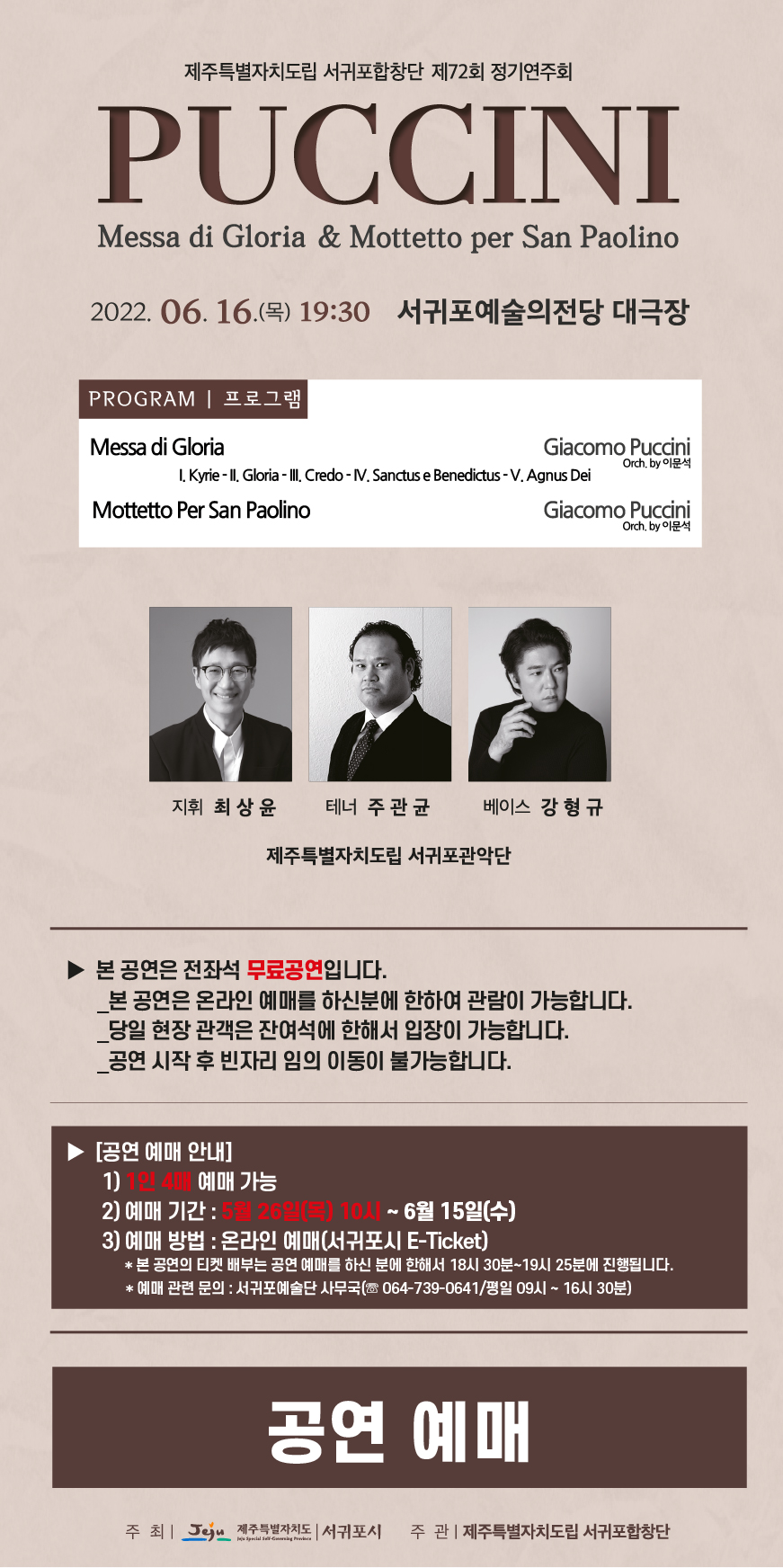 [공연] 도립서귀포합창단 제72회 정기연주회 프로그램.. | 서귀포예술단 | 2022-05-25 | 8164 | ||