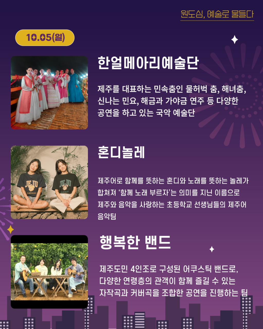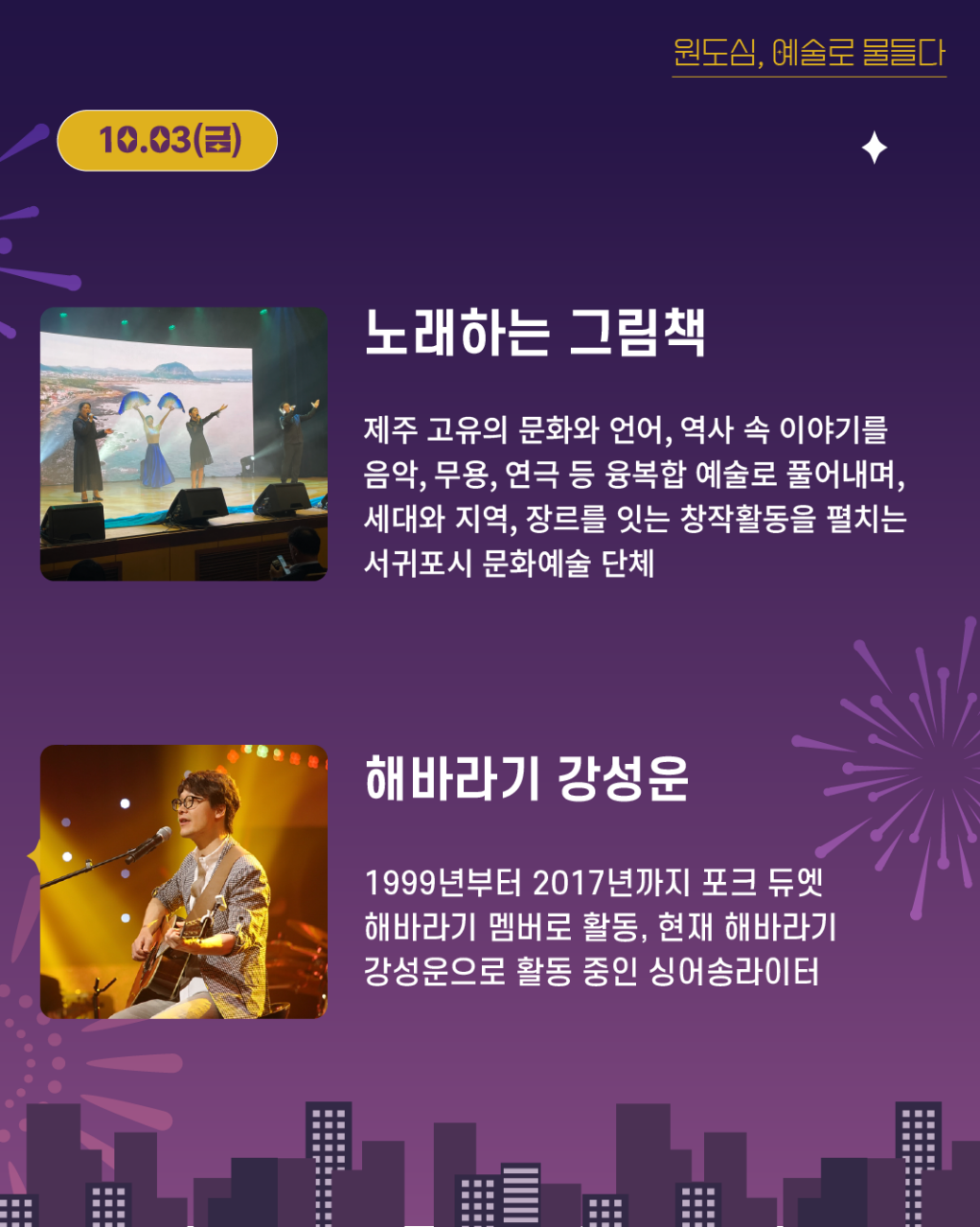 ✅ 마임, 지역 아티스트 공연, 불꽃놀이, 다양한 장르 융합 공연