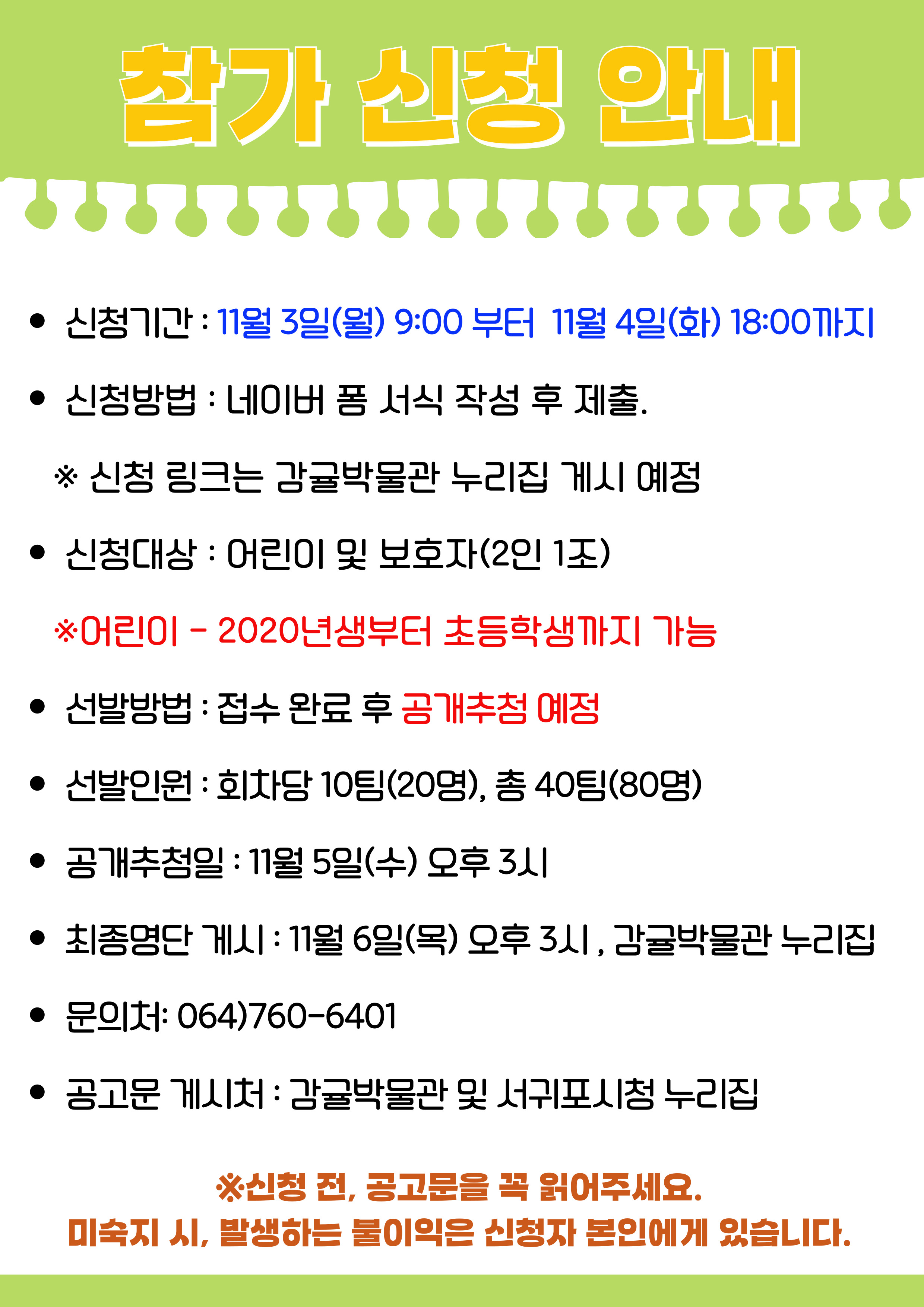 당일 무단 불참 시, 향후 감귤박물관 프로그램 참여가 제한될 수 있습니다.