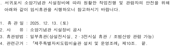 소암기념관 시설정비에 따른 임시휴관 시행(`25. 12. 13.)