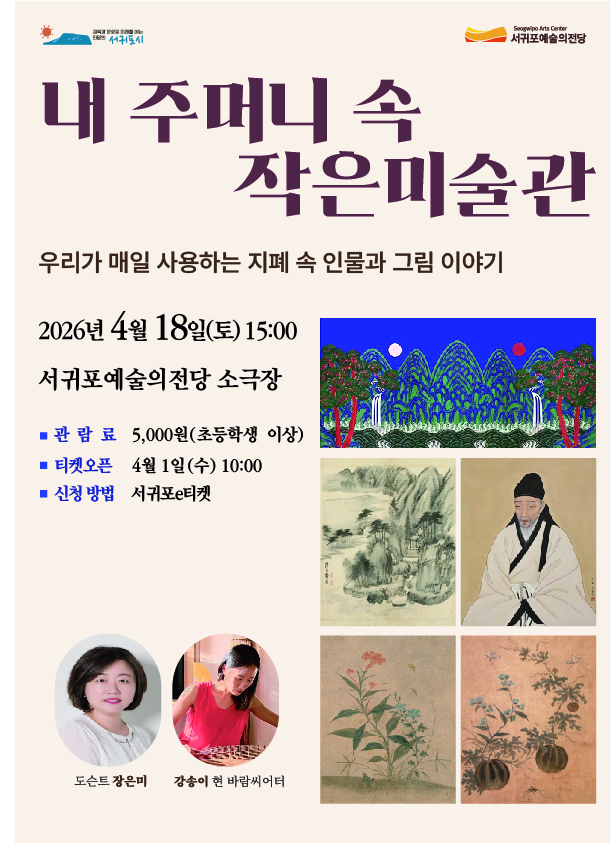 | 인문예술특강( 내 주머니 속 작은미술관).. N | 서귀포예술의전당 | 2026-03-30 | 2 | ||