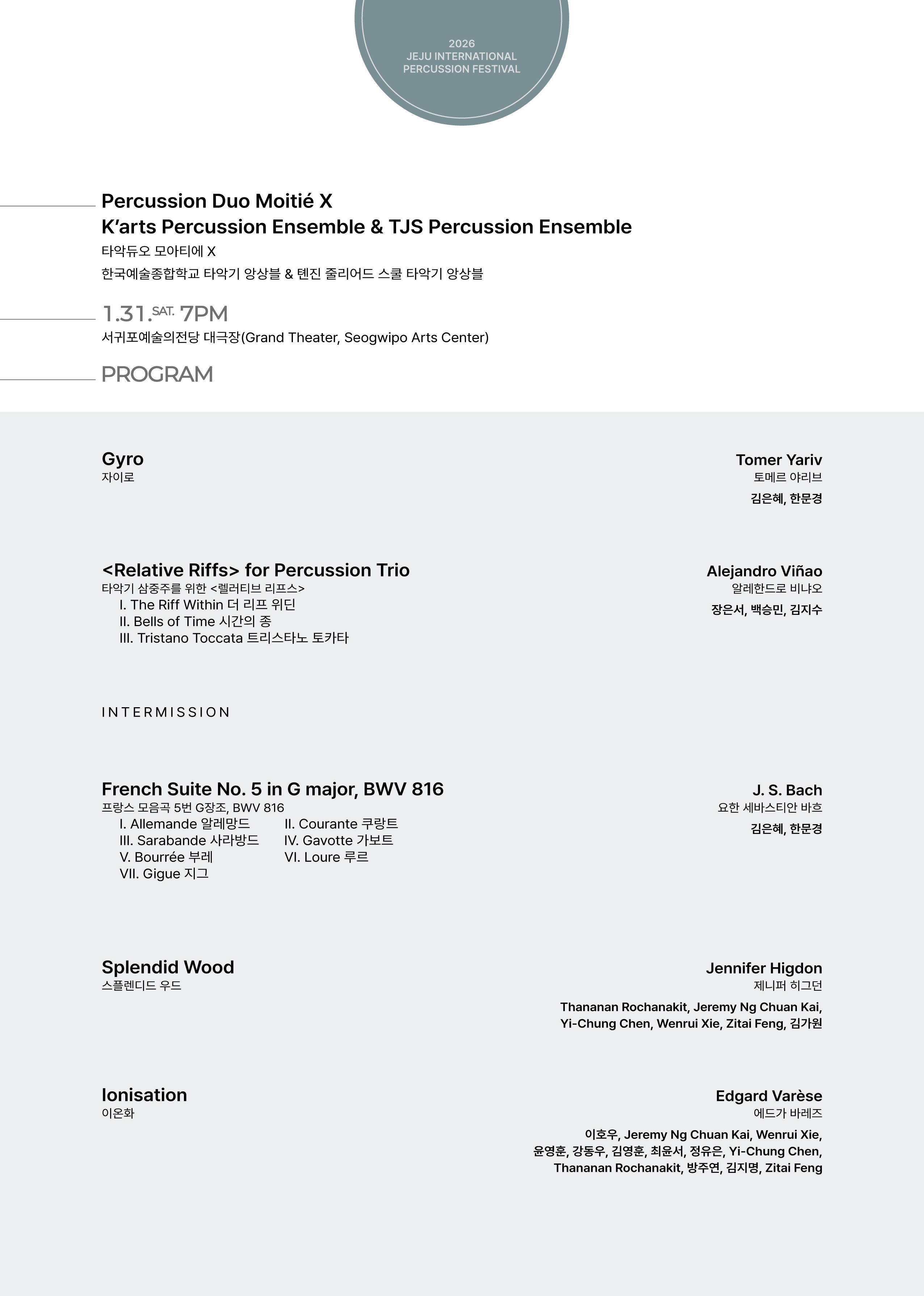 2026 제주국제타악기페스티벌-공연/전시상세정보