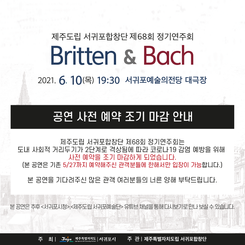 [공지] 서귀포합창단 제68회 정기연주회 사전예약 조기마감 안내