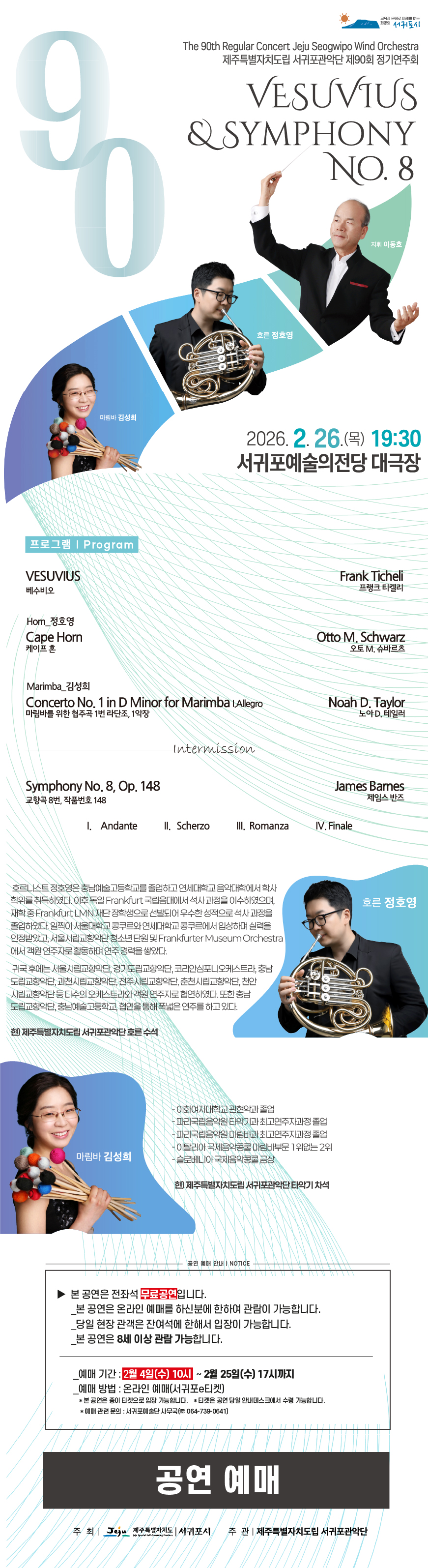 [공연] 도립서귀포관악단 제90회 정기연주회 공연 정보 및 예매 안내