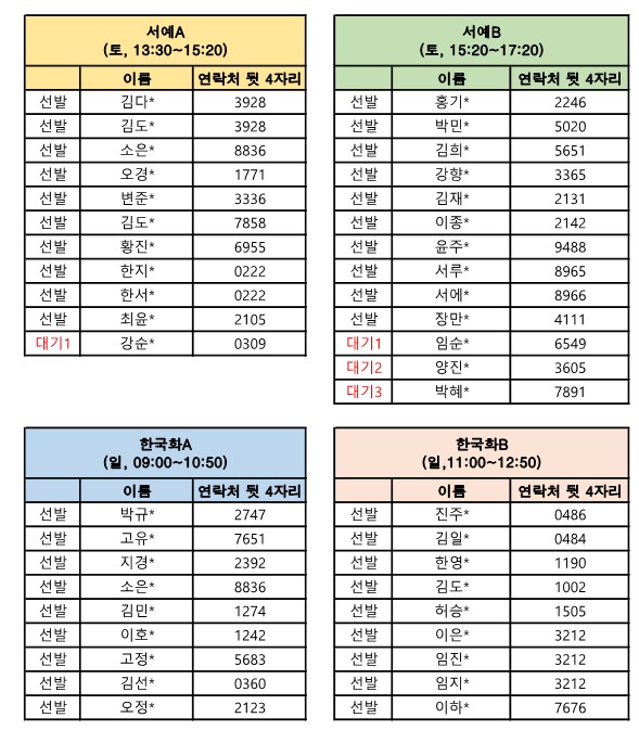 상반기 교육프로그램(서예·한국화교실) 수강생 선발 결과