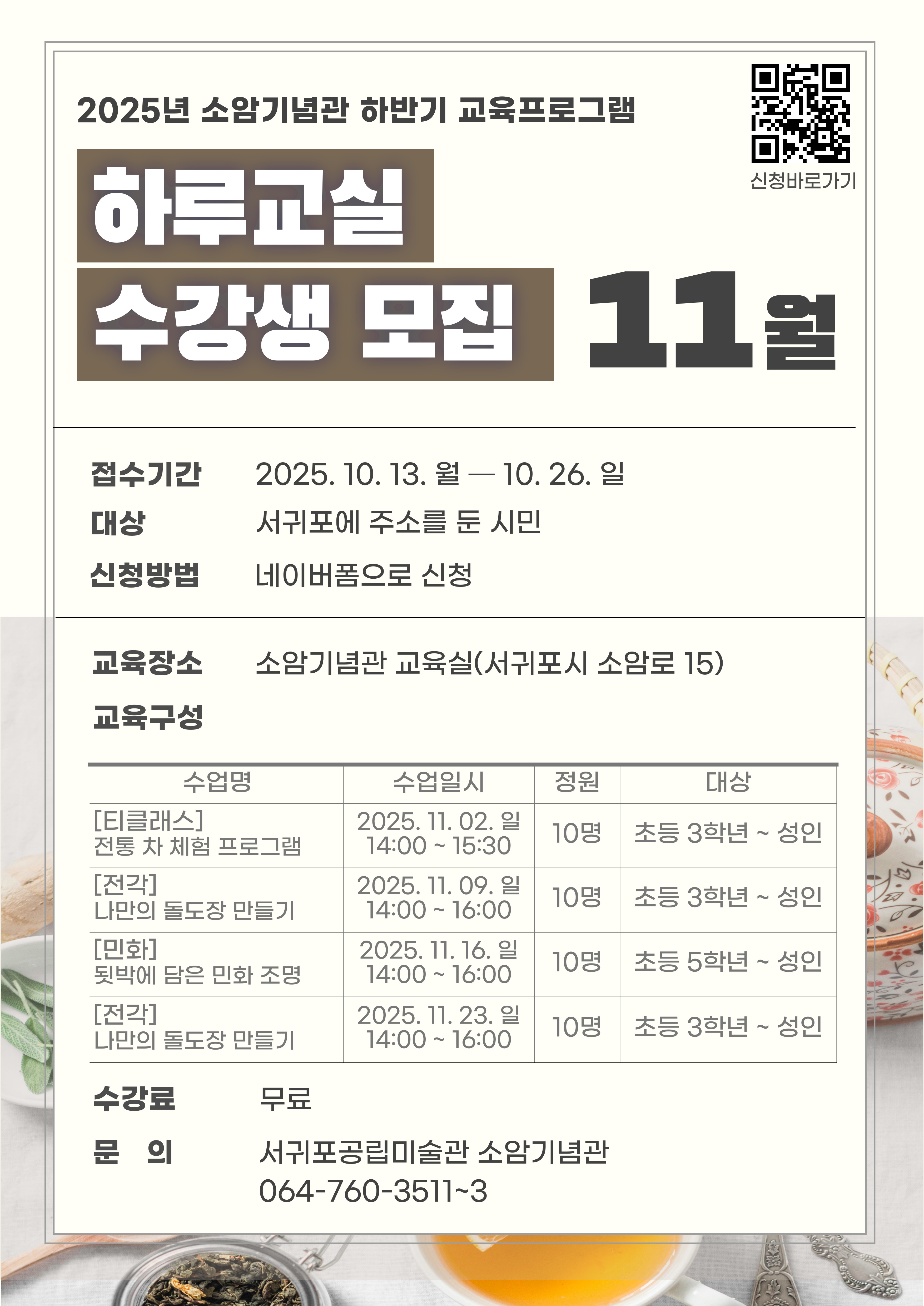 2025 하반기 교육프로그램 (11월 하루교실) 수강생 모집