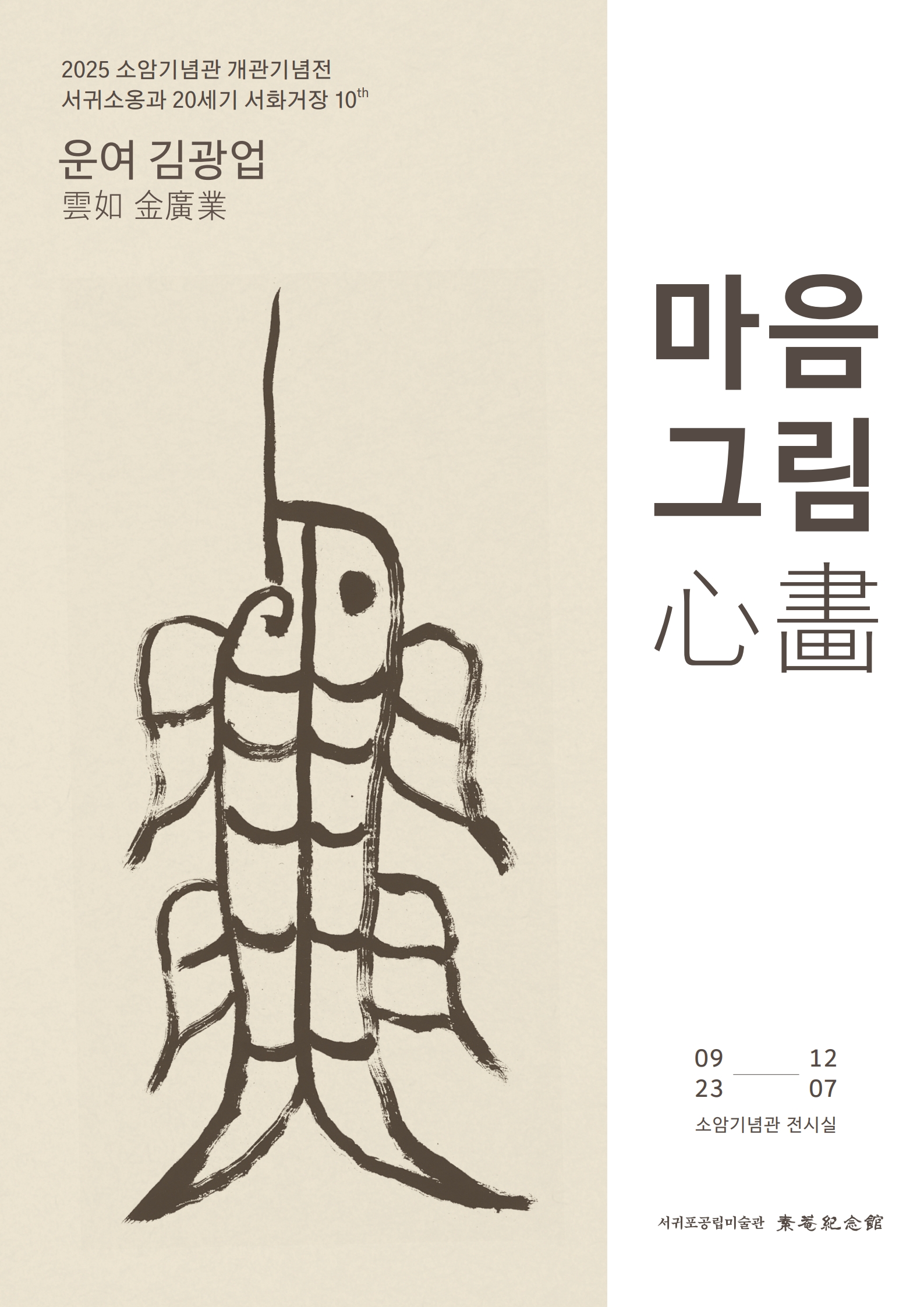 소암기념관 개관기념전 서귀소옹과 20세기 서화거장 10th <운여 김광업, 마음그림>